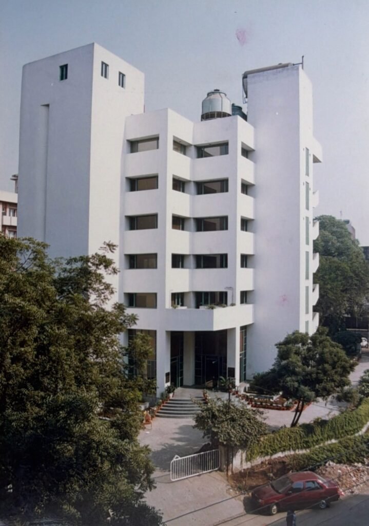 The foundation stone of Punjabi Bhavan, where it is currently housed, was laid on May 5, 1990, by Shri I. K. Gujral, MEA, Government of India, under the Chairpersonship of Bhapa Pritam Singh and Presidentship of Shri K. S. Duggal.